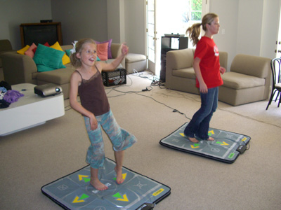 So far, Skylar and Calin battle it out, Micah is getting pretty good (even though he does look like Sammy Davis Jr. doing a full tap routine with the big arms and all!) and Tristen and I had three battles the day before I had the baby! I totally think DDR (you can abbreviate when get good) is what started my contractions! Anyway, Tristen and I are going to DDR every night for an hour so I can lose my post baby weight!