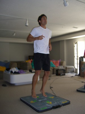 If anyone has ever gone to the arcade’s, there is always some nerdy little guy hanging out on the Dance Dance Revolution machine. I am always baffled by how sweaty they get, and how addicted they seem as they insert quarter after quarter. Well, to my surprise…..Micah got us Dance Dance Revolution, and it is so fun! He has the total set up and it is projected on one of our walls.