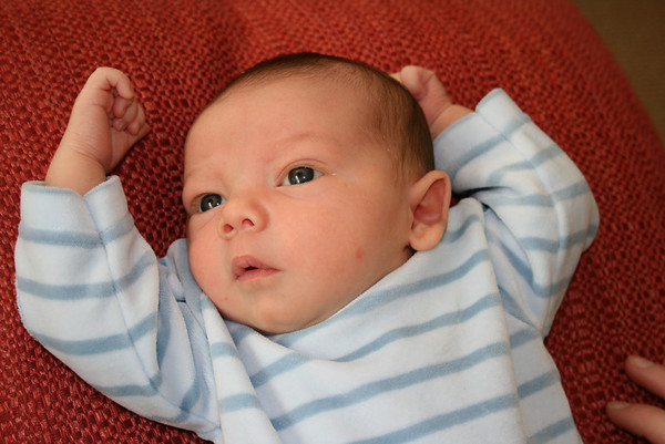 We went to see Dr. Carruth today. At this appointment Scout was 3 1/2 weeks old. At his last appointment about two weeks ago, Scout weighed 7 lbs, 11 ounces. Today he weighed in at 8 lbs, 14 ounces! He is a growing boy, and I had a hunch since he is the hungriest guy I know next to his dad! Like father…..like son!