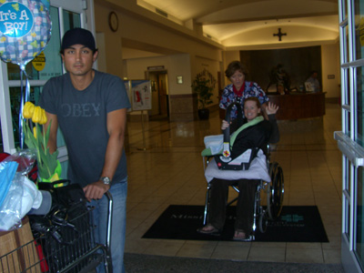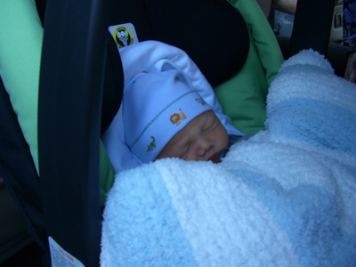 The next day, Micah packed all of our things up and we were headed home for a new era in our lives.  I got wheeled out and we put the baby in the car seat for his first ride ever!