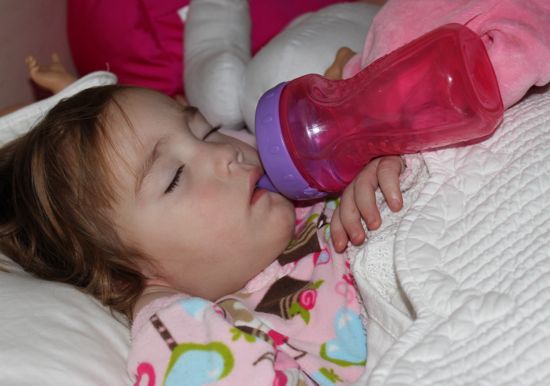 I quickly changed Icka’s diaper, and she was taking a drink while I ran out to put her clothes in the dirty clothes basket. When I came back– this is what I found.