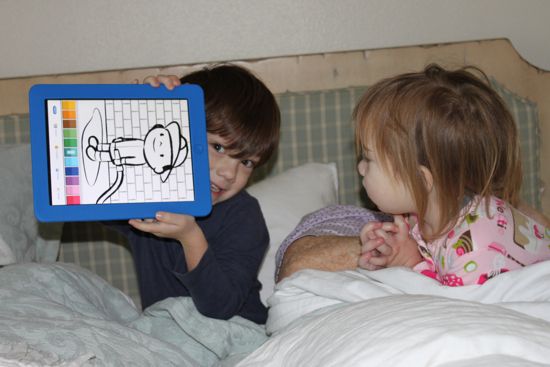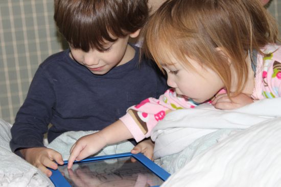 Sissy woke up as happy as can be. (Although I’m not sure why since she slept horribly.) Scout was totally chipper. I came up to find them both on my mom’s bed with the IPad.