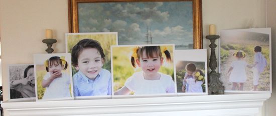 So we made him close his eyes after dinner while Scout and I put them all up on the mantel.  When he opened them, he was really excited.  He loved the pictures, and was excited that they were going in the office.  And the really amazing part is that I told Scout the day we were taking the pictures what they were for.  I told him it was a secret, and he couldn’t tell his dad.  And for two long weeks, he kept his little lips sealed.  I asked Micah if he ever hinted or gave it away, and Micah said not even a tiny bit.  Nice work — my little tight-lipped boy!  From this point forward, I elect you as my official confidant.