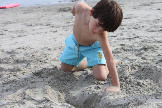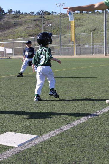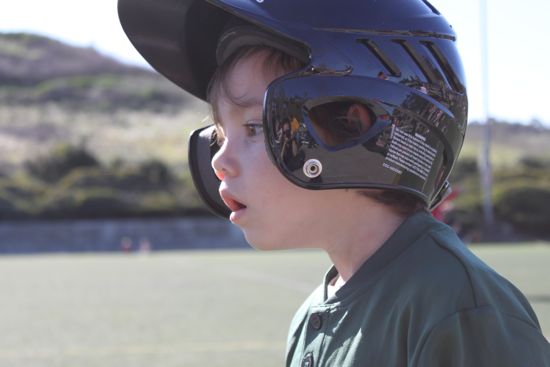 Like the time he was running from first base into the outfield.  But you can see his dad’s finger in the top of the shot telling him the correct direction.