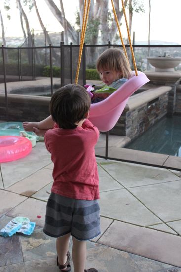 Scout asked me to put Icka in the swing.  So I did.  The next thing I know, he was pumping her up, and they are both chanting “Underdogs”!