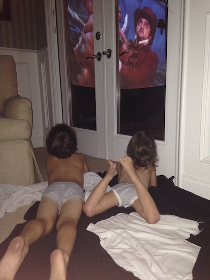 Micah pulled out all of our outdoor movie stuff, and created a Dive-In Movie….featuring The Never-Ending Story.