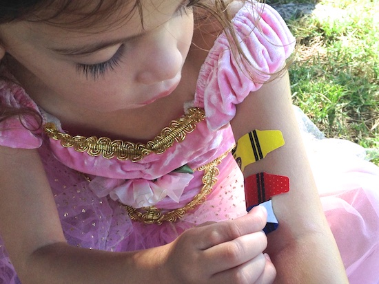 We are about 6 months in, and I can barely take it anymore.  So this morning, I had a little picking fest.  Pippi doesn’t love it, but in about 2 weeks, those bumps will be gone.  (I know because Dash originally had this rash, and I took care of his quickly.)  But when she was refusing my picking, I went and showed her the cute new crayon BandAids I got for her, and she relented just enough for me to clean up a few of her bumps.  Poor little girl.