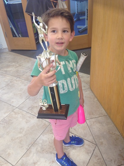 Dash got the tennis trophy today, for winning the final game of the practice. He gets to take it home for a week. They also gave him the choice of having an Otter Pop, but he chose the trophy. I congratulated him after, and oohed and aahed over the trophy. But after, I told him that he should pick the Otter Pop next time, because they are so yummy. (And that way, I won’t have to track that trophy all week, and have to remember to return it.)