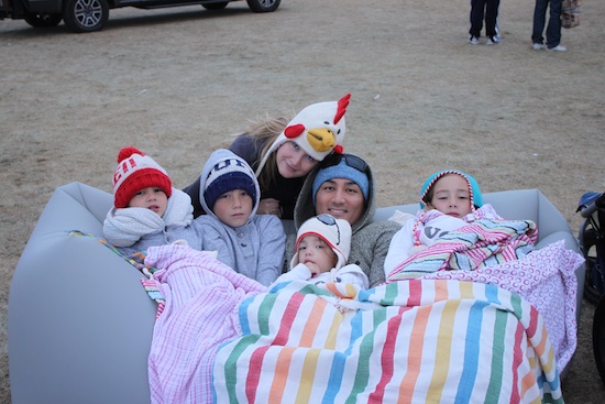 Micah brought our inflatable couch, and all of the kids cuddled with Micah to keep warm.
