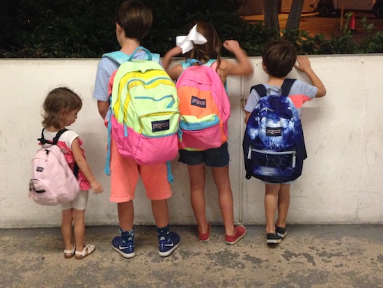 I love this scene, where the kids are all pumped up to write their names and information for each of their own backpacks!
