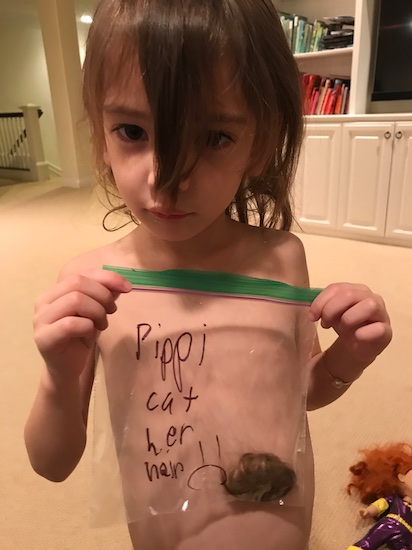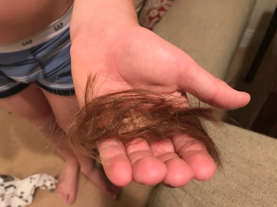 You can’t imagine the gasp that came out of my mouth, when Scout brought me this handful of hair, while yelling, “Pippi cut her own hair!”