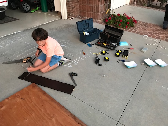 Dash came home and told us that he needed to make a Valentine’s box to collect his Valentines in. It was due tomorrow, and he could do anything. (But it needed to be about the size of a shoe box.) Scout immediately started telling Dash his vision…it involved taking apart his El Torro Loco remote control car, nails, track, sawing and gluing. Two hours after it started, I went out to see the scene: