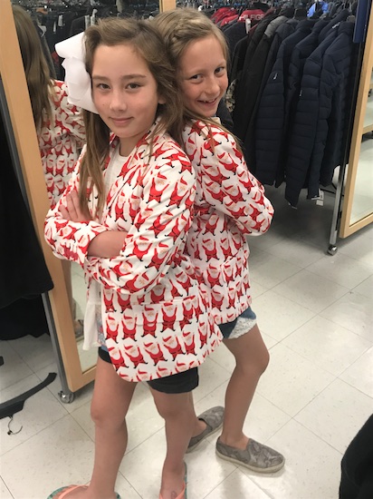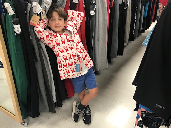 It was my own child! Then I reevaluated, and realized this was the BEST! I could shop while my kids whipped around the store on a bike! And in a stellar Santa Jacket to boot! This is all too good!