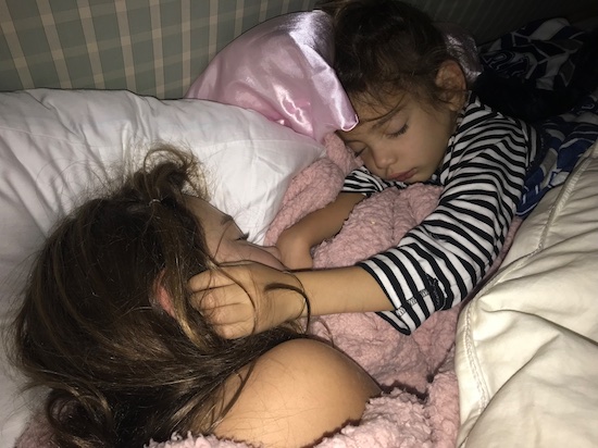 Nothing melts me the way my kid’s being sweet to each other does. Especially when I happen upon them sleeping next to each other with a book they have read together, a deck of cards they were playing together, or in this case a sweet hand on the cheek of an older sister. These two are different enough and similar enough, that I predict them to be great friends their whole life! We have already plotted out NYC girl’s shopping trips, trips back to Sanibel and our future three houses all in a row!