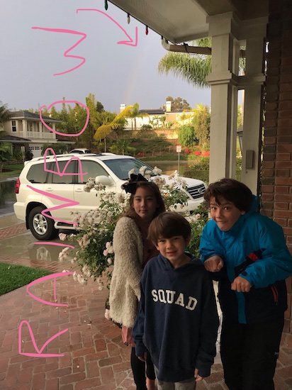 Navy spotted a rainbow this morning, and insisted I take a picture of them underneath it! It has been the rainiest winter I have ever remembered in my whole life, but we are getting the prettiest green hills and tons of rainbows out of it. So bring on the rain! Especially since there will for sure be a #superbloom this year. I can’t wait for the fields of wild sweet peas!