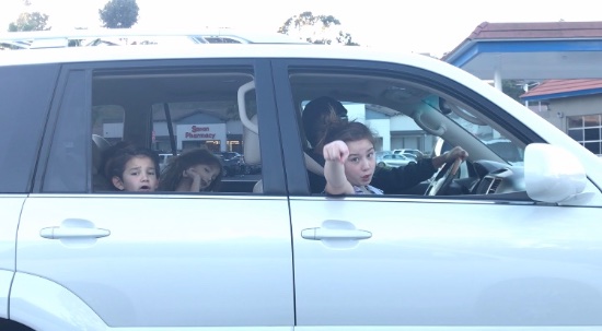 As we drove off, Micah had “We are the Champions” blasting on his radio, while the girls snag it loud and proud. Poor Dash, who got caught in the wrong car!
