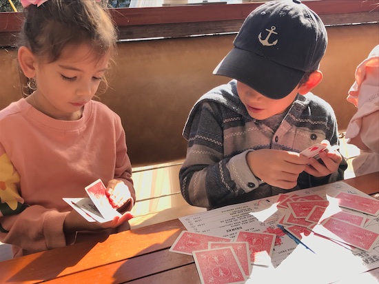 After all of the action, we sat down to a yummy breakfast by the sea, where the kids played cards, and Micah and I sat happy to have these four.