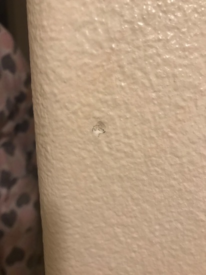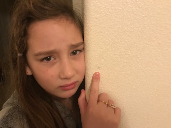 She said that she had to get up and tell me one last thing before bed, and ran right into the wall. I asked her if it was the same wall that has been there for the last 11 years we have lived here.