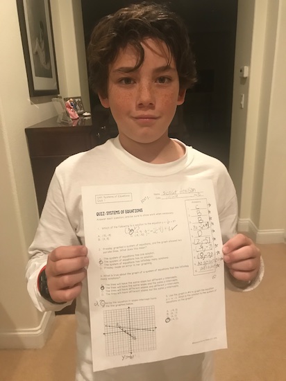 So after all of these bumps in Scout’s math road…when he came home with this 100% on his latest math test…we were all freaking out! He knew all of the math, he showed his work, he didn’t make rushed mistakes….and he DOMINATED!!!