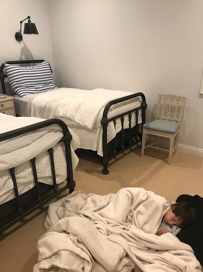 Dash and Scout’s room is almost complete. I told the boys how it is a hard fast rule that the room is spotless each morning before school — which obviously includes making the bed. Well, guess who is solving his own problem of having to make the bed each morning! Dash has slept on the ground for a week now, and says he loves it down there. I obviously know it is to avoid making his bed in the morning…but here is my dirty little secret…I did the same thing when I was little. And truth be told…when I bought my first house, and had my first king bed — I pulled up the coverlet on the end of the bed, and slept there each night, to avoid redoing my many pillows the next morning!