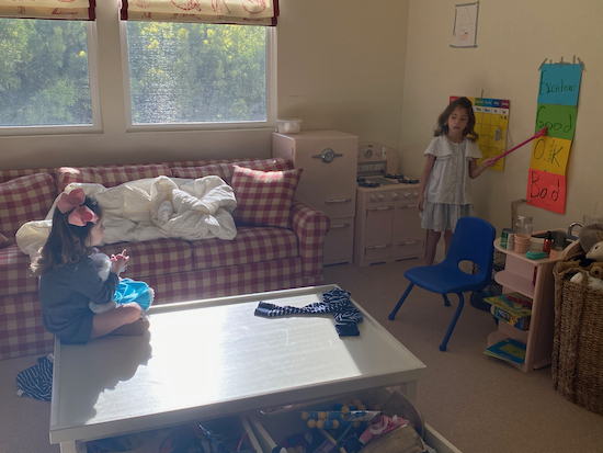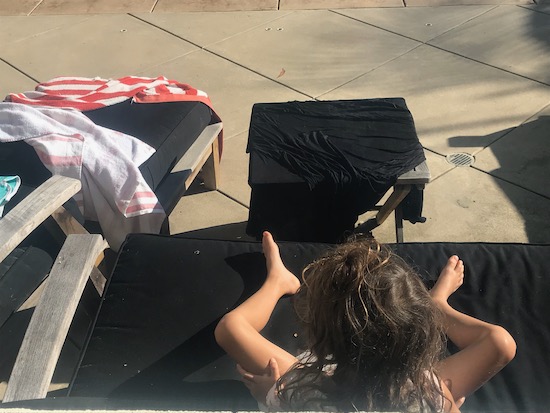 This Saturday morning brought a little girl plopped on the outdoor couch. After 30 minutes of this, I went out and asked, “Are you working hard, or hardly working?”